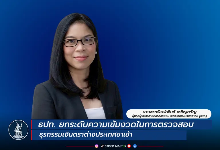 นางสาวพิมพ์พันธ์ เจริญขวัญ ผู้ช่วยผู้ว่าการสายตลาดการเงิน ธนาคารแห่งประเทศไทย (ธปท.) เปิดเผยว่า ธปท. ได้ยกระดับความเข้มงวดในการกำกับดูแลธุรกรรมเงินตราต่างประเทศขาเข้า