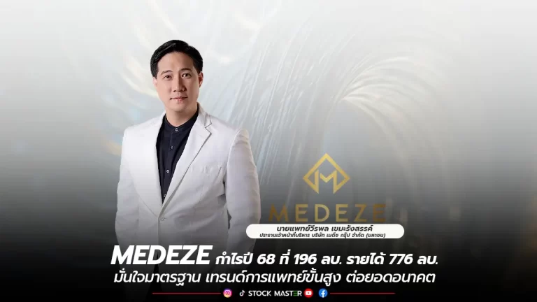 MEDEZE กำไรปี 68 ที่ 196 ลบ. รายได้ 776 ลบ. มั่นใจมาตรฐาน เทรนด์การแพทย์ขั้นสูง ต่อยอดอนาคต