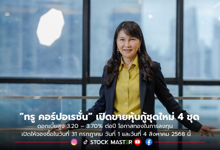 “ทรู คอร์ปอเรชั่น” เปิดขายหุ้นกู้ชุดใหม่ 4 ชุด ดอกเบี้ยสูง 3.20 – 3.70% ต่อปี โอกาสทองในการลงทุน เปิดให้จองซื้อในวันที่ 31 กรกฎาคม วันที่ 1 และวันที่ 4 สิงหาคม 2568 นี้