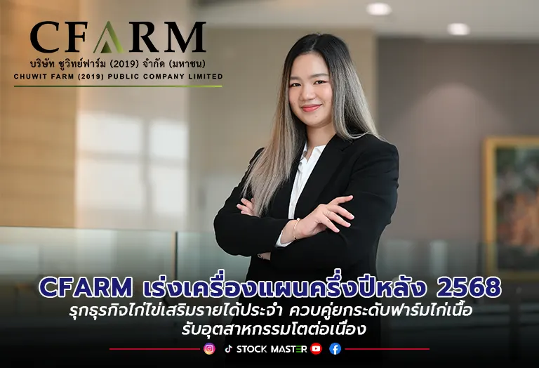 บมจ.ชูวิทย์ฟาร์ม (2019) หรือ CFARM เดินหน้ากลยุทธ์ครึ่งปีหลัง 2568 ปรับโครงสร้างรายได้จากธุรกิจไก่เนื้อสู่การลงทุนในธุรกิจไก่ไข่ เพื่อเพิ่มความต่อเนื่องของรายได้และเสถียรภาพทางธุรกิจในระยะยาว