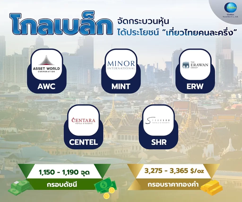 บล. โกลเบล็ก (GBS) ประเมินหุ้นไทยสัปดาห์นี้ผันผวนต่อเนื่อง จากแรงกดดันความไม่แน่นอนของนโยบายภาษีการค้าของสหรัฐ หลัง ทรัมป์ ประกาศรีดภาษี 30% จากการนำเข้าสินค้าจากสหภาพยุโรป-เม็กซิโก มีผลบังคับ 1 ส.ค.นี้ จึงให้กรอบดัชนี 1,150-1,190 จุด แนะ กลยุทธ์ลงทุนในหุ้นที่ได้ประโยชน์จากโครงการเที่ยวไทยคนละครึ่ง ชู AWC-MINT-ERW-CENTEL-SHR น่าลงทุน