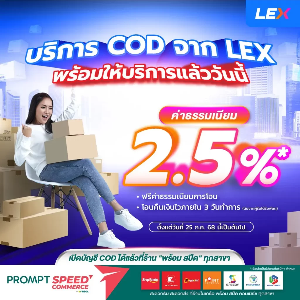 WSOL ดัน พร้อมสปีด คอมเมิร์ซ ผู้ให้บริการแฟรนไชส์ร้านร่วมขนส่งในฐานะ 4PL (Fourth-Party Logistics) ยกระดับบริการขนส่งครบวงจร จับมือพันธมิตรยักษ์ใหญ่ LEX (Lazada Express)