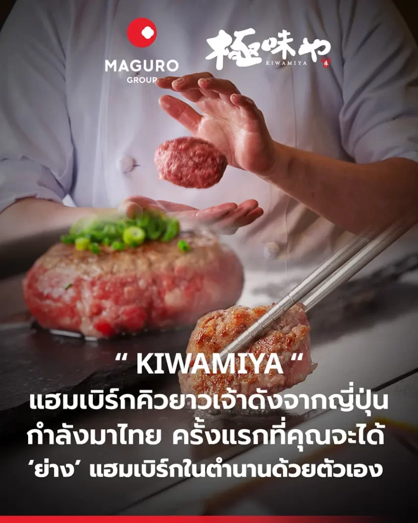 MAGURO Group ผู้บริหารแบรนด์ร้านอาหารชั้นแนวหน้าในประเทศไทย เขย่าวงการ ร้านอาหารอีกครั้ง เตรียมเปิดแบรนด์ใหม่ KIWAMIYA (คิวามิยะ) ร้านแฮมเบิร์กและสเต็กเนื้อวากิว ต้นตำรับจากญี่ปุ่น ซึ่งเป็นแบรนด์นำเข้า (Licensed brand)