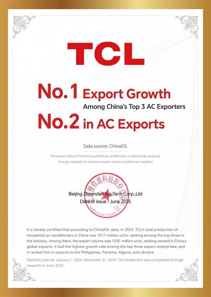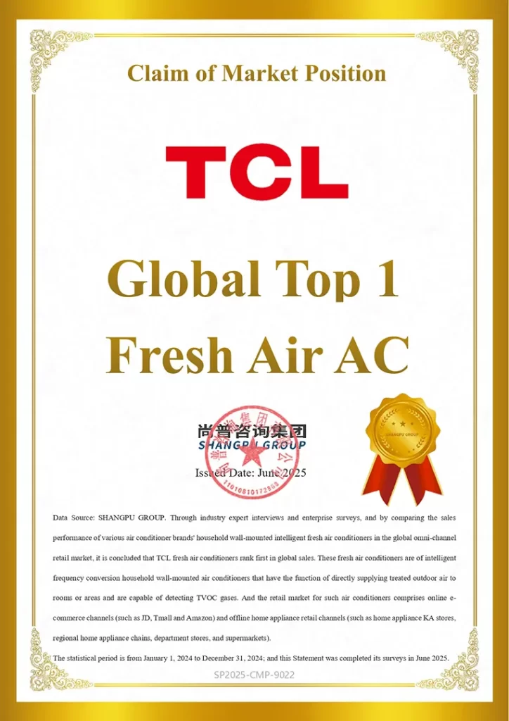 TCL ได้สร้างมาตรฐานใหม่ให้กับอุตสาหกรรมเครื่องปรับอากาศ Fresh Air อย่างต่อเนื่อง จากการประกาศ Global Fresh Air Strategy ในปี 2021 และการเปิดตัวนวัตกรรม FreshIN 3.0 และ FreshIN C7 ที่มาพร้อมเทคโนโลยีล้ำสมัย อาทิ การควบคุมด้วยเสียง AI, การประหยัดพลังงานด้วย AI สูงสุดถึง 37% การเติมอากาศบริสุทธิ์อย่างต่อเนื่อง และระบบลดเสียงรบกวน ซึ่งทำให้ FreshIN 3.0 ได้รับรางวัล “Smart Fresh Air Technology Innovation Award” ในงาน CES 2025 ตอกย้ำความเป็นผู้นำด้านเทคโนโลยีที่ผสานกับการขยายตลาดทั่วโลก ส่งผลให้บริษัทมียอดขายต่างประเทศคิดเป็น 65% ของยอดขายรวม และครองอันดับ 1 ยอดส่งออกเครื่องปรับอากาศในหลายประเทศ อาทิ ฟิลิปปินส์ ปานามา แอลจีเรีย และยูเครน