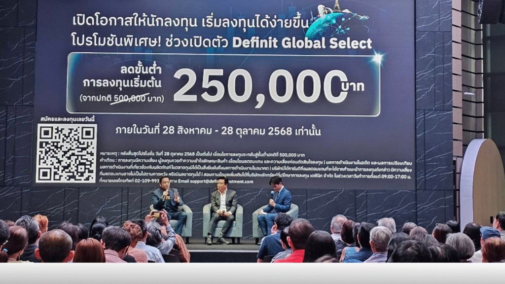 Definit by Finnomena บริษัทหลักทรัพย์ที่ปรึกษาการลงทุนในเครือ Finnomena Group ผู้เชี่ยวชาญด้านการวิเคราะห์และแนะนำการลงทุน ร่วมกับ บริษัทหลักทรัพย์ หยวนต้า (ประเทศไทย) จำกัด หนึ่งในบริษัทหลักทรัพย์ชั้นนำของไทย ที่มีความเชี่ยวชาญด้านการให้บริการ DR และพัฒนาเทคโนโลยีการลงทุนอย่างต่อเนื่อง เปิดตัวพอร์ตการลงทุนใหม่ “Definit Select” อย่างเป็นทางการเมื่อวันที่ 28 สิงหาคม 2568 ณ หอประชุมศุกรีย์ แก้วเจริญ อาคารตลาดหลักทรัพย์แห่งประเทศไทย