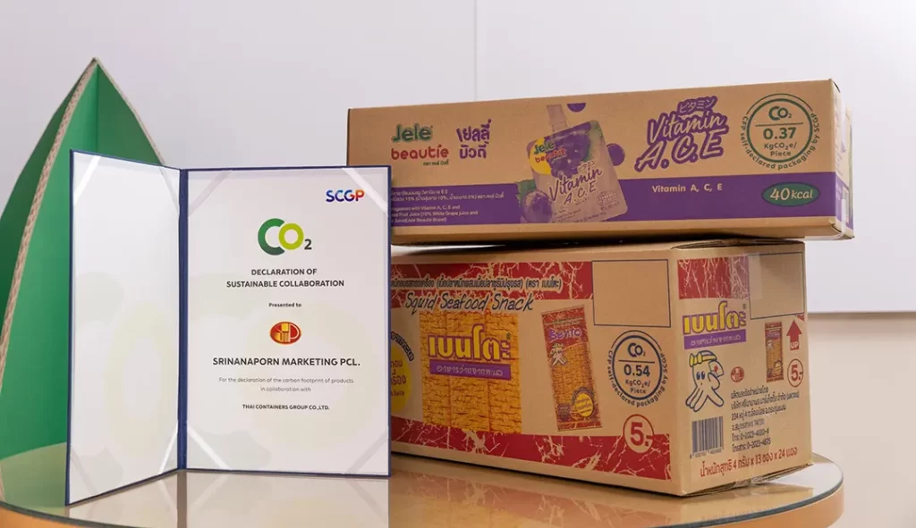 ส่งต่อบรรจุภัณฑ์ที่ติดฉลากคาร์บอนฟุตพริ้นท์ของผลิตภัณฑ์ (CFP) ที่ออกโดย SCGP เพื่อแสดงปริมาณการปล่อยก๊าซเรือนกระจก สร้างความโปร่งใส และความรับผิดชอบต่อสังคม ตลอดจนเพิ่มขีดความสามารถในการแข่งขันทางการตลาด สำหรับคาร์บอนฟุตพริ้นท์ของผลิตภัณฑ์ (CFP) คือปริมาณก๊าซเรือนกระจกที่ปล่อยออกมาจากผลิตภัณฑ์ โดยคำนวณออกมาในรูปของคาร์บอนไดออกไซด์เทียบเท่า เพื่อให้ผู้บริโภครับรู้ว่าสินค้าและบริการ คำนึงถึงผลกระทบการเปลี่ยนแปลงสภาพภูมิอากาศ