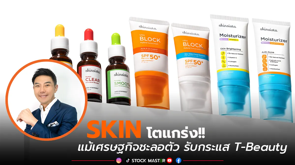 SKIN เติบโตแข็งแกร่ง รับกระแส T-Beauty มาแรง มูลค่าตลาดโต 13.3% โชว์ศักยภาพสกินแคร์แบรนด์ไทย ดันยอดขายแบรนด์ Skinsista และ Dermie โตต่อเนื่อง แม้ภาวะเศรษฐกิจชะลอตัว เดินหน้าต่อยอดโอกาสธุรกิจ แย้มเตรียมเข้าจดทะเบียนตลาดหลักทรัพย์เอ็ม เอ ไอ (mai) ช่วงครึ่งปีหลังนี้