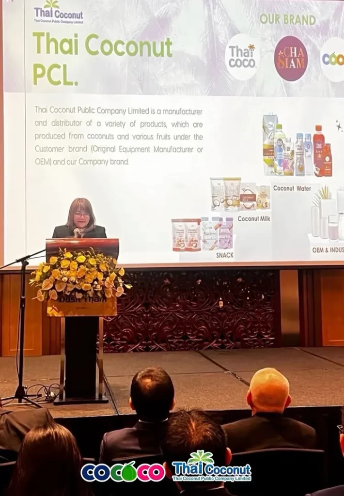บริษัท ไทย โคโคนัท จำกัด (มหาชน) หรือ COCOCO นำโดย นางสาวพัฒรา ทัศจันทร์ ประธานเจ้าหน้าที่ฝ่ายการเงินและสารสนเทศ เข้าร่วมคณะผู้แทนภาคเอกชนไทย เดินทางเยือนสาธารณรัฐฟิลิปปินส์ ระหว่างวันที่ 16–19 กันยายน 2568 เพื่อเข้าร่วมกิจกรรม จับคู่ธุรกิจ (Business Matching) และ สำรวจศักยภาพด้านการค้าและการลงทุน ณ กรุงมะนิลาและเมืองดาเวา