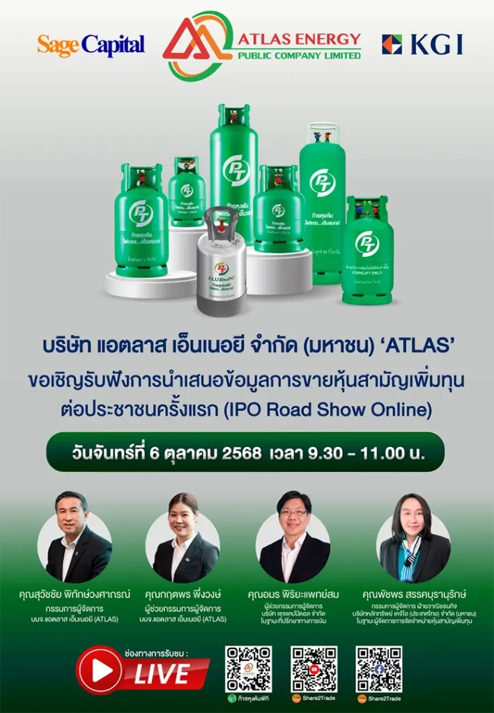 พร้อมให้ข้อมูลการระดมทุนและเข้าจดทะเบียนในตลาดหลักทรัพย์แห่งประเทศไทย (SET) …งานนี้ ไม่ได้มาเล่นๆ เพราะมีทั้ง “อมร พิริยะแพทย์สม” ผู้ช่วยกรรมการผู้จัดการ บริษัท เซจแคปปิตอล จำกัด ในฐานะที่ปรึกษาทางการเงิน ผนึกกำลังกับโบรกเกอร์มือทอง “พัชพร สรรคบุรานุรักษ์” กรรมการผู้จัดการ ฝ่ายวาณิชธนกิจ1 บริษัทหลักทรัพย์ เคจีไอ (ประเทศไทย) จำกัด (มหาชน) ในฐานะผู้จัดการการจัดจำหน่าย และรับประกันการจำหน่ายหุ้น IPO ลุยเสิร์ฟข้อมูลเด็ด…แบบจัดเต็ม พร้อมชูจุดเด่นเน้นการจำหน่ายก๊าซ LPG แบบค้าปลีก แล้วยังมีรายได้จาก Taxi Ads เป็นแรงหนุน ดันมาร์จิ้น พุ่งสูง! ก่อนเสนอขาย จำนวน 418.42 ล้านหุ้น ในงานโรดโชว์บนแพลตฟอร์มออนไลน์วันที่ 6 ต.ค.นี้ เวลา 09.30 -11.00 น. ผ่านช่องทางเพจ Facebook ก๊าซหุงต้มพีที หรือ www.facebook.com/PTCookingGas และทาง Facebook , YouTube ของ Share2Trade แฟนคลับหุ้นไอพีโอห้ามพลาดด้วยประการทั้งปวง!!!