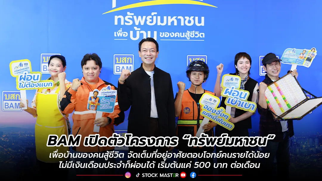 ดีลเด็ด! คนรายได้น้อยไม่มีเงินเดือนประจำก็ผ่อนบ้านได้ BAM เปิดตัวโครงการ “ทรัพย์มหาชน” เพื่อบ้านของคนสู้ชีวิต สร้างโอกาสใหม่ให้คนไทยเข้าถึง “บ้าน” อย่างแท้จริง ในราคาจับต้องได้ ผ่อนตรง กับ BAM แบบสบาย ๆ