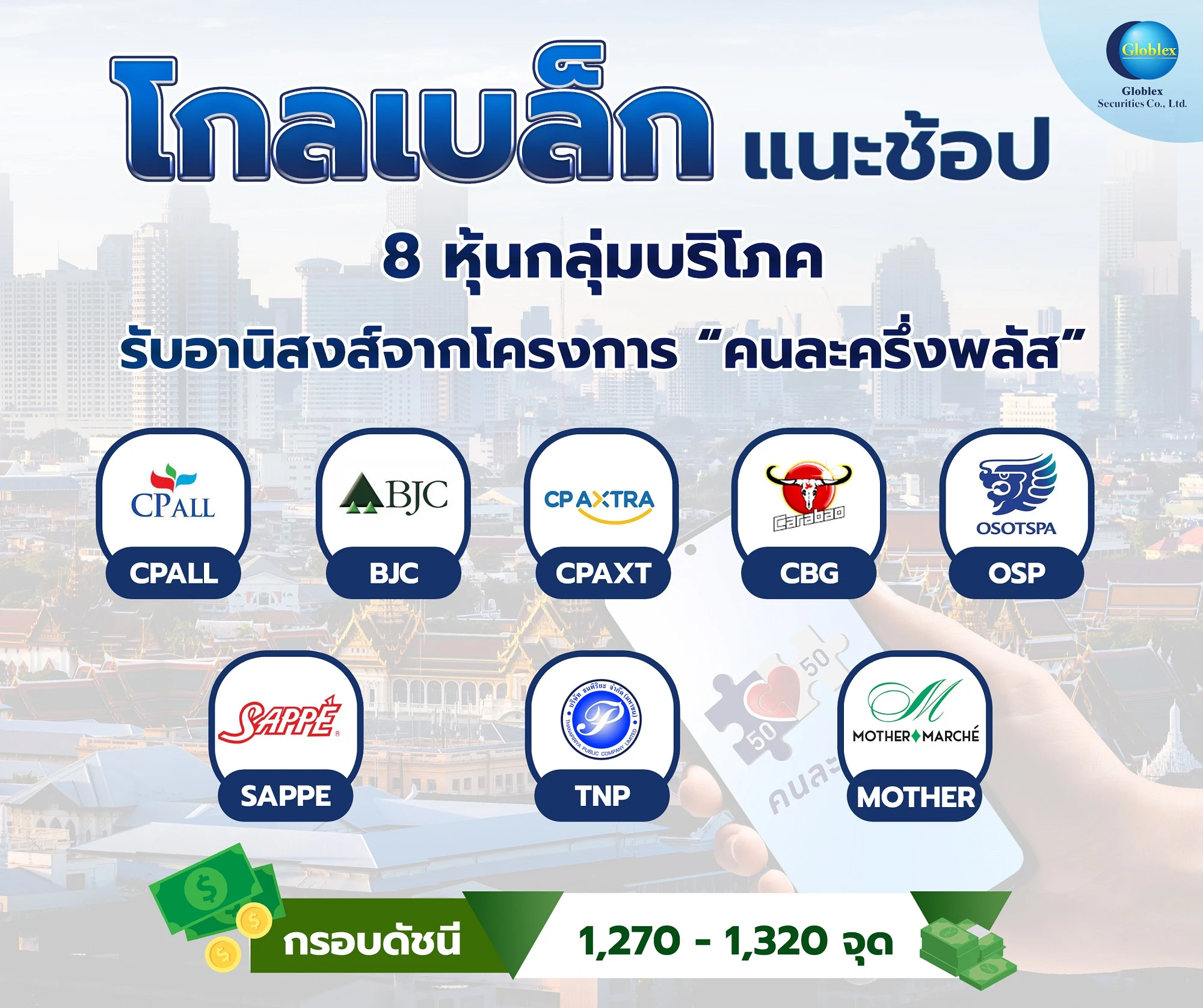 นายวัชเรนทร์ จงยรรยง ผู้อำนวยการฝ่ายวิจัย บล.โกลเบล็ก แนะนำกลยุทธ์การลงทุนในหุ้นที่ได้ประโยชน์จากการประกาศของกระทรวงการคลังถึงความพร้อมในการเดินหน้าหุ้นที่ได้ประโยชน์จากโครงการ “คนละครึ่งพลัส” ที่คาดว่าจะใช้ได้ในปลายเดือนต.ค. นี้ โดยหุ้นกลุ่มค้าปลีกและสินค้าอุปโภคบริโภคที่มีแนวโน้มได้รับประโยชน์โดยตรงจากมาตรการกระตุ้นเศรษฐกิจดังกล่าวได้แก่ CPALL BJC CPAXT CBG OSP SAPPE TNP และ MOTHER