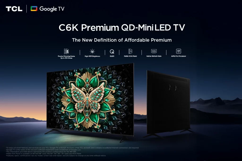 ทั้งนี้ รุ่น C6K Premium QD-Mini LED หนึ่งใน C Series รุ่นนี้จะเหมาะกับคนที่อยากอัปเกรดจากทีวีทั่วไปสู่ Smart TV คุณภาพระดับพรีเมียม โดยยังคงไว้ซึ่งคุณภาพ ความแตกต่างด้วย ขนาด 55 – 75 นิ้ว ใช้หน้าจอแบบ HVA Panel เทคโนโลยีล่าสุดของ TCL และขนาด 85 และ 98 นิ้ว หน้าจอเป็นแบบจอแมตต์ Matte HVA Panel หรือจอแบบด้าน ช่วยลดแสงสะท้อน ไม่มีแสงรบกวน มาพร้อมกับ ภาพ4K HDR หรือ High HDR Brightness แม้ห้องสว่างแค่ไหนภาพก็คมชัดและมีชีวิตชีวาแม้แสงแดดส่องเข้ามา เพลิดเพลินไปกับทุกรายละเอียดที่ซ่อนอยู่ในฉากที่มีทั้งแสงและเงาได้อย่างชัดเจน