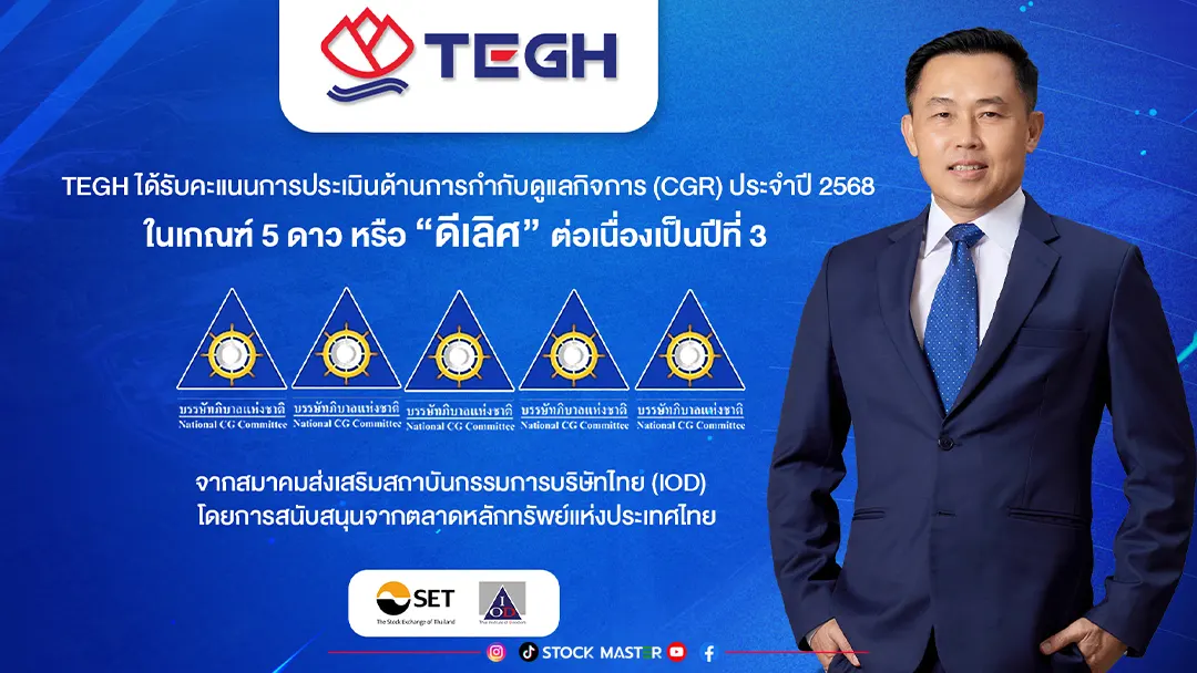 โดยได้รับการสนับสนุนจาก ตลาดหลักทรัพย์แห่งประเทศไทย (ตลท.) ผลการประเมินดังกล่าวสะท้อนถึงความมุ่งมั่นของ TEGH ในการดำเนินธุรกิจด้วยหลักธรรมาภิบาลอย่างต่อเนื่อง ทั้งในด้านความโปร่งใส การตรวจสอบได้ และการคำนึงถึงผู้มีส่วนได้ส่วนเสียทุกกลุ่ม นอกจากนี้ บริษัทฯ ยังบูรณาการแนวทางการพัฒนาด้านความยั่งยืนที่ครอบคลุมด้านสิ่งแวดล้อม สังคม และธรรมาภิบาล (ESG) เข้าเป็นส่วนหนึ่งของกลยุทธ์องค์กร เพื่อส่งเสริมการเติบโตอย่างยั่งยืน พร้อมสร้างความเชื่อมั่นและคุณค่าร่วมแก่ผู้ลงทุน ชุมชน สังคม และผู้มีส่วนได้เสียตลอดห่วงโซ่คุณค่า รู้อย่างนี้แล้วชื่นใจแทนผู้ถือหุ้นจริงๆ