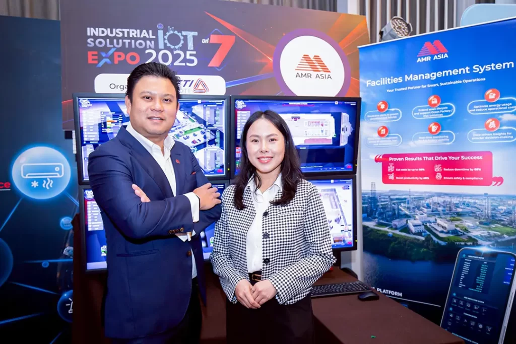 ภายในงาน AMR ร่วมออกบูธโชว์ศักยภาพการเป็นผู้นำด้านวิศวกรรมระบบและโซลูชันอัจฉริยะครบวงจร พร้อมนำเสนอข้อมูลระบบ FACILITY MANAGEMENT SYSTEM (FMS) ซึ่งบริษัทพัฒนาขึ้น เพื่อช่วยตอบโจทย์การก้าวสู่อุตสาหกรรม 5.0 เป็นระบบอำนวยความสะดวกแบบครบวงจร ด้วยระบบโซลูชันปฏิบัติการแบบบูรณาการที่จะช่วยให้องค์กรสามารถบริหารจัดการ ดูแลรักษา และเพิ่มประสิทธิภาพ การใช้งานของทรัพย์สินทางกายภาพ อาทิ ระบบไฟฟ้า ระบบประปา ระบบทำความเย็น การควบคุมแสงสว่าง การป้องกันอัคคีภัย และอื่นๆ โดยสามารถรวบรวมและวิเคราะห์ข้อมูลด้วยระบบอัจฉริยะ โดดเด่นด้วยการจัดการพลังงานที่ได้รับมาตรฐานความปลอดภัยสูง อีกทั้งยังสามารถบริหารจัดการต้นทุนได้เป็นอย่างดี ควบคู่กับการคำนึงถึงประโยชน์ของผู้ใช้งานและการดูแลสังคมโดยรวม นอกจากนี้ ยังได้จับมือร่วมกับพันธมิตรได้แก่ Nokia และ Fortinet นำเสนอโซลูชัน Optical LAN (PON) สำหรับทดแทนเครือข่ายแบบดังดั้งเดิมที่ใช้สายทอง และ Secure Access Service Edge (SASE) เพื่อเพิ่มความปลอดภัยสำหรับการเข้าถึง application จากระยะไกลอีกด้วย งานนี้มีผู้ประกอบการทั้งจากภาครัฐและเอกชนให้ความสนใจเข้ารับฟังข้อมูลจำนวนมาก