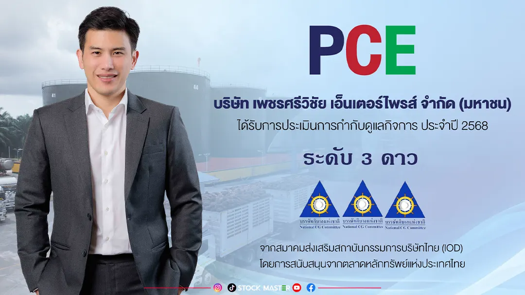 บริษัท เพชรศรีวิชัย เอ็นเตอร์ไพรส์ จำกัด (มหาชน) (PCE) ผู้นำอุตสาหกรรมน้ำมันปาล์มแบบครบวงจร ได้รับการประเมิน การกำกับดูแลกิจการ (CGR) ประจำปี 2568 ระดับ 3 ดาว จาก สมาคมส่งเสริมสถาบันกรรมการบริษัทไทย (IOD)