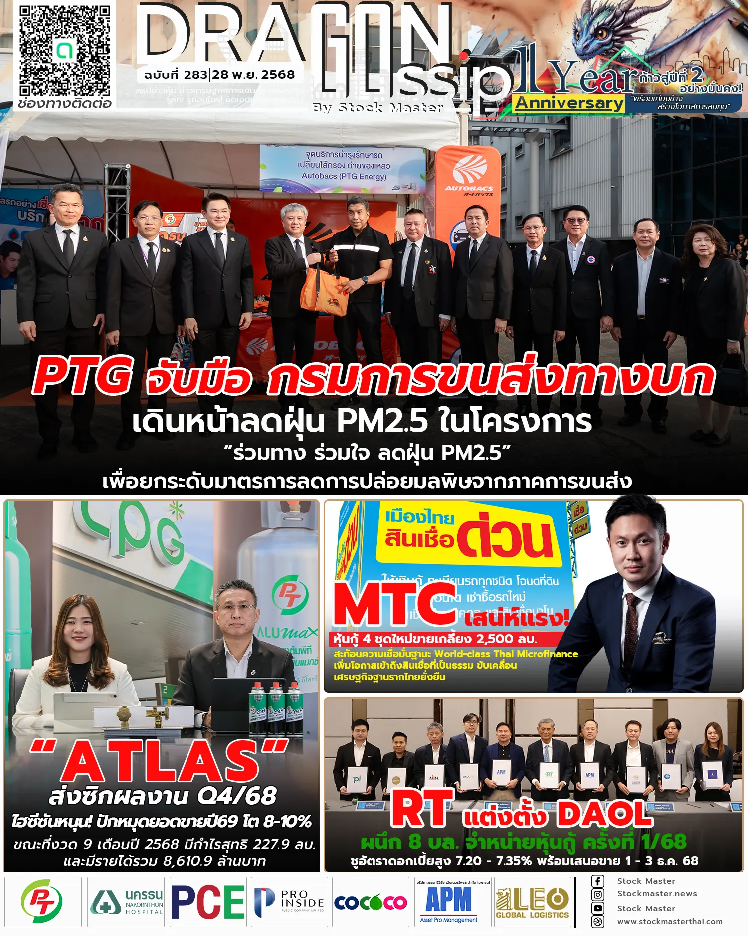 1 ) PTG จับมือ กรมการขนส่งทางบก เดินหน้าลดฝุ่น PM2.5 ในโครงการ “ร่วมทาง ร่วมใจ ลดฝุ่น PM2.5” เพื่อยกระดับมาตรการลดการปล่อยมลพิษจากภาคการขนส่ง