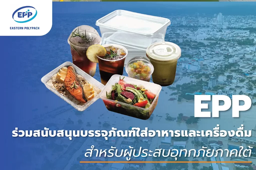 EPP มอบบรรจุภัณฑ์ใส่อาหารจำนวนรวมทั้งสิ้น 75,000 กล่อง ร่วมสนับสนุนภารกิจช่วยเหลือนำไปจัดเตรียมอาหารและส่งต่อให้ผู้ประสบภัยที่กำลังเผชิญสถานการณ์น้ำท่วมอย่างหนักในพื้นที่ภาคใต้ เพื่ออำนวยความสะดวก รวดเร็ว และถูกสุขลักษณะอนามัยในการปรุงอาหารปริมาณมาก ตลอดจนส่งต่ออาหารถึงมือผู้ประสบภัยได้อย่างมีประสิทธิภาพสูงสุดในภาวะฉุกเฉิน