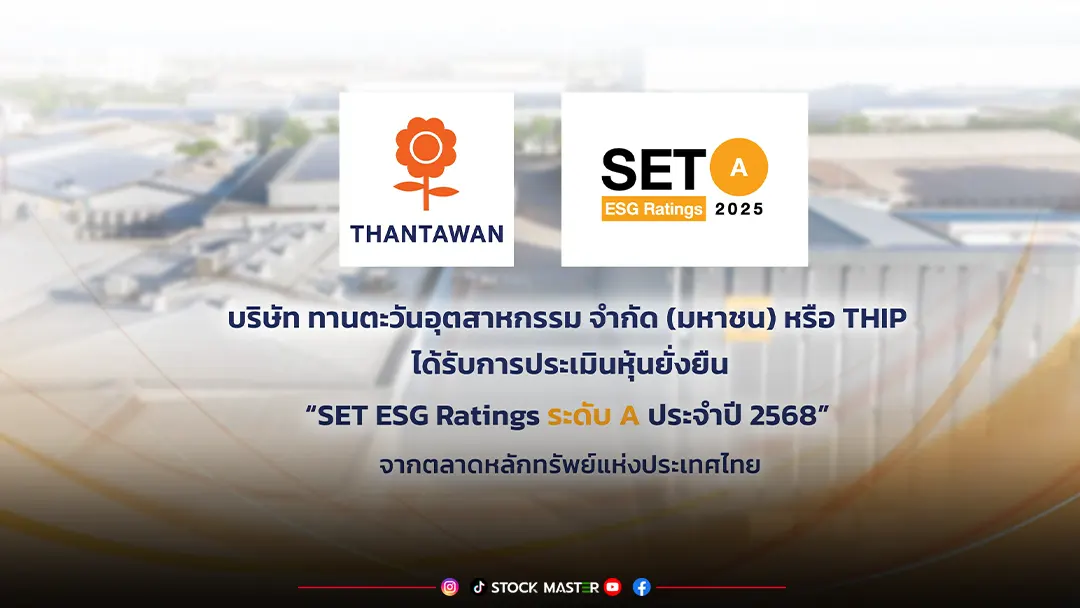 นางพจนารถ ปริญภัทร์ภากร รักษาการประธานเจ้าหน้าที่บริหาร บริษัท ทานตะวันอุตสาหกรรม จำกัด (มหาชน) หรือ THIP ผู้ผลิตและจำหน่ายบรรจุภัณฑ์แบบครบวงจร เป็นปลื้มสามารถคว้าหุ้นยั่งยืน ประจำปี 2568 ระดับ “A” ต่อเนื่องเป็นปีที่ 3 จากตลาดหลักทรัพย์แห่งประเทศไทย