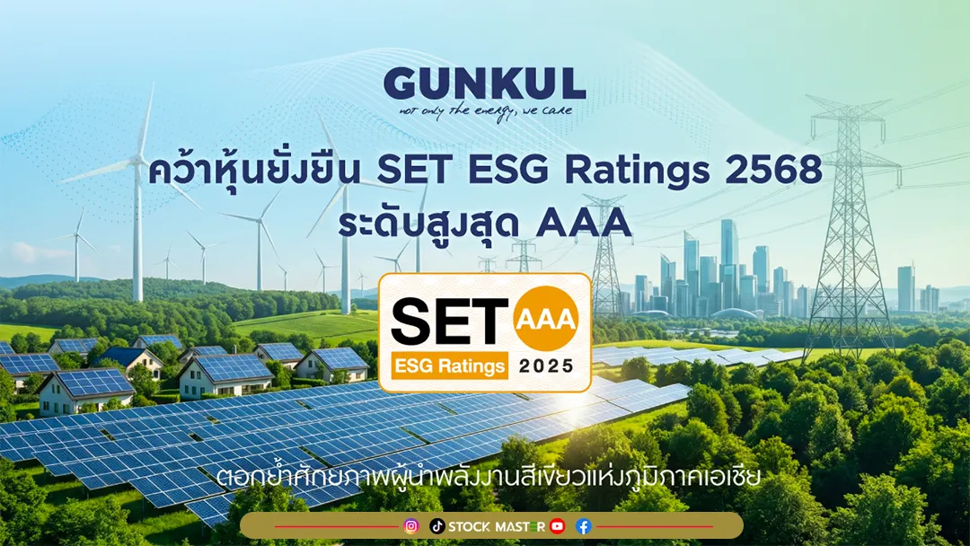 ผลการประเมินในระดับ AAA ที่ GUNKUL ได้รับในปีนี้ โดยเป็น 1 ใน 102 บริษัทจดทะเบียน ที่ได้ รับการประเมินให้เป็นหุ้นยั่งยืน SET ESG Ratings ระดับ AAA ซึ่งนอกจากเป็นความสำเร็จในมิติด้าน การพัฒนาอย่างยั่งยืนตามกรอบ ESG ยังเป็นการสะท้อนถึงบทบาทในการสนับสนุนเป้าหมายการลด การปล่อยก๊าซเรือนกระจก และเป้าหมาย Net-Zero ของประเทศไทย ตลอดจนการสร้างความเชื่อมั่น ให้แก่ นักลงทุน คู่ค้า และสังคมในระยะยาว