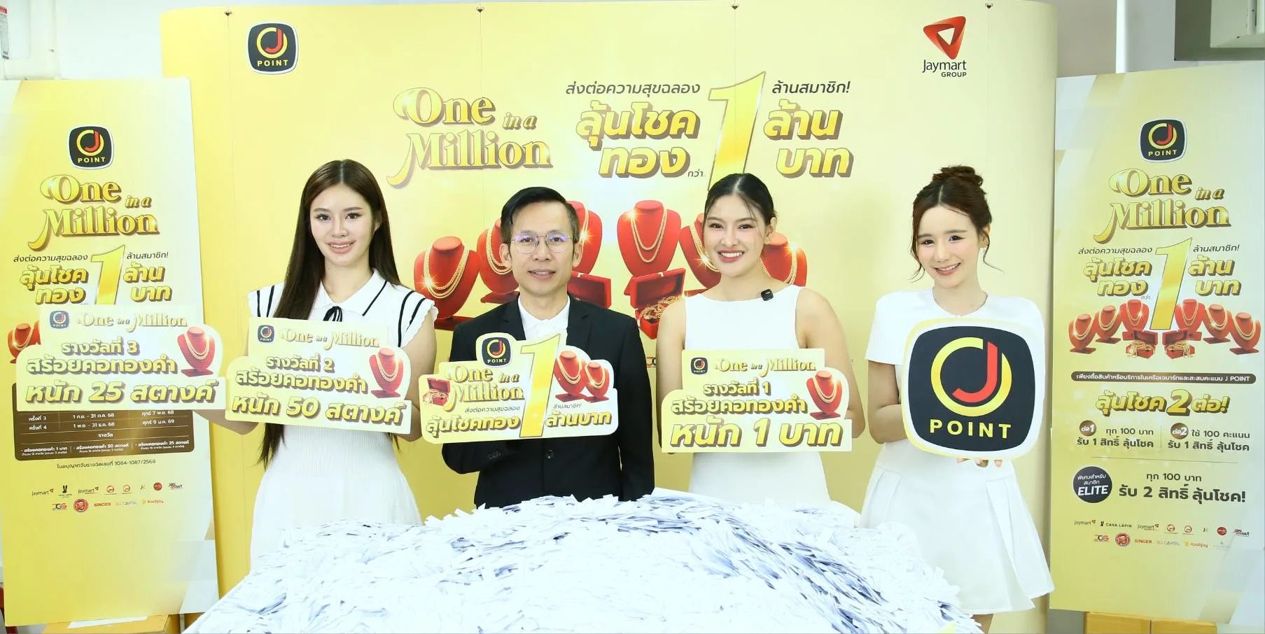 บทสรุปของแคมเปญ “J Point One in a Million” ตลอดระยะเวลาที่ผ่านมา แสดงให้เห็นถึงการเติบโตและความสำเร็จของ J POINT ในฐานะโปรแกรมสมาชิกที่อยู่ใกล้ชิดไลฟ์สไตล์ของลูกค้า พร้อมมอบสิทธิประโยชน์และประสบการณ์ดี ๆ ให้กับสมาชิกอย่างต่อเนื่อง ตลอดปี 2568 สมาชิก J POINT ได้ร่วมลุ้นและรับของรางวัลสร้อยคอทองคำรวมมูลค่ากว่า 1 ล้านบาท ซึ่งเป็นอีกหนึ่งคำขอบคุณจากใจที่กลุ่มเจมาร์ทมอบให้แก่สมาชิกทุกคนที่ร่วมเดินทางมาด้วยกัน และสำหรับปี 2569 ความพิเศษยังไม่หยุดเพียงเท่านี้ กลุ่มเจมาร์ทและ J POINT เตรียมต่อยอดความสนุกและความคุ้มค่า กับมหกรรมการโอนคะแนน ที่จะเปิดโอกาสให้สมาชิกสามารถนำคะแนนจากแบรนด์พันธมิตรมาโอนเป็นคะแนน J POINT เพื่อรับสิทธิพิเศษได้อย่างหลากหลายและไร้ขีดจำกัด ครอบคลุมทุกไลฟ์สไตล์การใช้ชีวิตให้สมาชิกนำคะแนนมาใช้รับสิทธิพิเศษได้หลากหลายมากยิ่งขึ้น ไม่ว่าจะเป็นส่วนลด ของรางวัล หรือประสบการณ์ดี ๆ ที่คัดสรรมาเพื่อตอบโจทย์ทุกไลฟ์สไตล์ พร้อมโอกาสร่วมลุ้นรางวัลพิเศษจากการโอนคะแนนตลอดทั้งปี