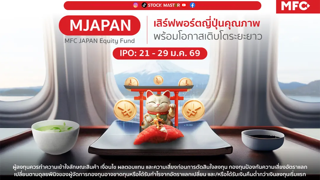 กองทุน MJAPAN เปิดขายครั้งแรก (IPO) ระหว่างวันที่ 21-29 มกราคม 2569 เงินลงทุนขั้นต่ำเพียง 1,000 บาท ทั้งนี้ ผู้ลงทุนควรทำความเข้าใจลักษณะสินค้า เงื่อนไข ผลตอบแทน และความเสี่ยงก่อนการตัดสินใจลงทุน กองทุนป้องกันความเสี่ยงอัตราแลกเปลี่ยนตามดุลยพินิจของผู้จัดการกองทุนอาจขาดทุนหรือได้รับกำไรจากอัตราแลกเปลี่ยน และ/หรือได้รับเงินคืนต่ำกว่าเงินลงทุนเริ่มแรก ผู้ที่สนใจสอบถามข้อมูลและขอรับหนังสือ ชี้ชวน ได้ที่บลจ.เอ็มเอฟซี จำกัด (มหาชน) และตัวแทนสนับสนุนการขาย หรือ โทรศัพท์ 0-2649-2000 ติดต่อฝ่ายวางแผนการลงทุน กด 2 หรือ Contact Center กด 0 สาขาแจ้งวัฒนะ โทร. 0-2835-3055-57 สาขาปิ่นเกล้า โทร.0-2014-3150-2 สาขาขอนแก่น โทร. 043-204-014-16 สาขาเชียงใหม่ โทร.0-5321-8480-82 สาขาระยอง โทร.033-100-340 สาขาหาดใหญ่ โทร. 074-232-324-25 หรือที่ www.mfcfund.com