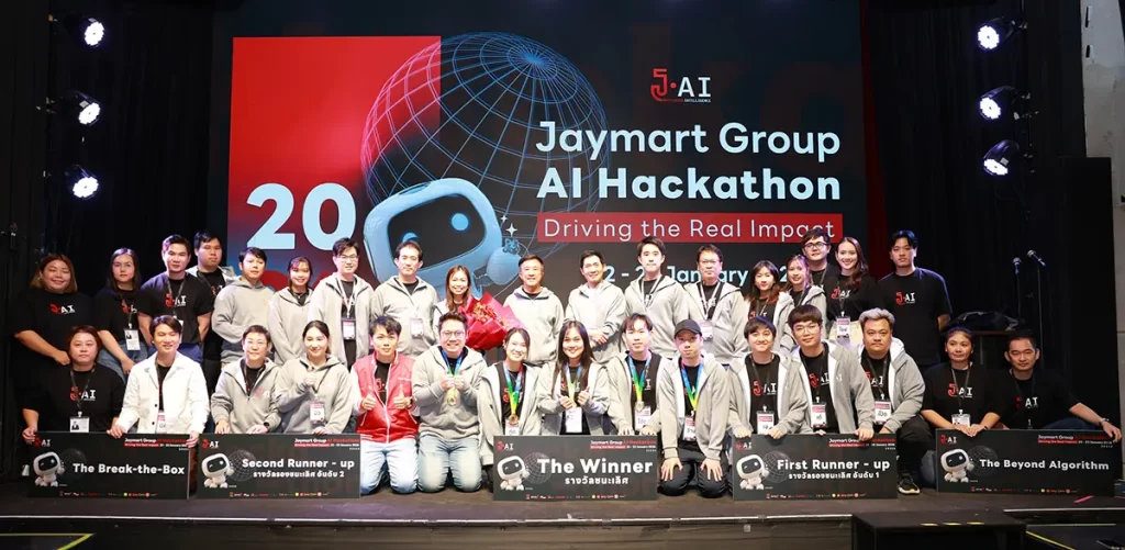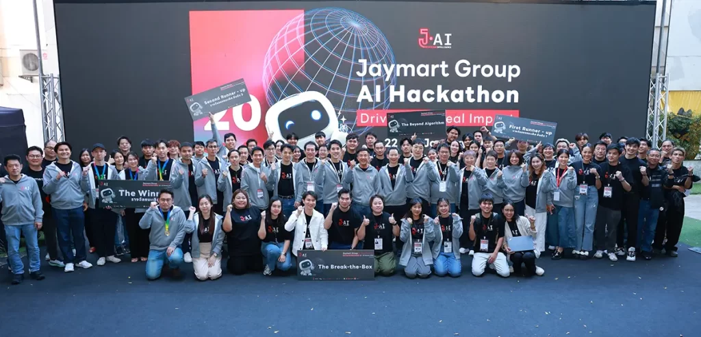 จัดงาน “Jaymart Group AI Hackathon 2026” เปิดเวทีให้ 13 บริษัทในเครือ ร่วมพัฒนาโซลูชัน AI จากโจทย์ธุรกิจจริง ภายใต้แนวคิด “Driving the Real Impact” เพื่อสร้างผลลัพธ์ทางธุรกิจที่จับต้องได้ และสามารถต่อยอดสู่การใช้งานจริงหลังจบโครงการ