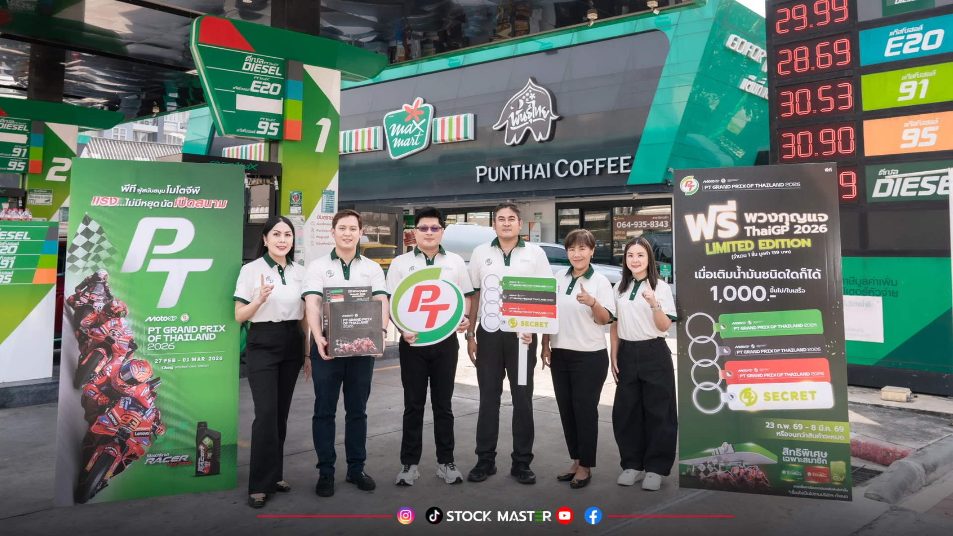 ทั้งนี้ PTG ในฐานะผู้สนับสนุนหลักของรายการ PT Grand Prix of Thailand 2026 ตั้งใจส่งต่อพลังและความตื่นเต้นของการแข่งขันสู่ลูกค้าสถานีบริการน้ำมันพีที ผ่านการสร้างประสบการณ์ที่มากกว่าการเติมน้ำมัน โดยเปิดโอกาสให้ลูกค้าได้ใกล้ชิดกับ MotoGP มากยิ่งขึ้น ยิ่งขึ้น ผ่านการแจกพวงกุญแจ ThaiGP 2026 ดีไซน์พิเศษ พร้อมตามหาตัว Secret จำนวนจำกัด เพื่อสร้างความตื่นเต้นให้กับแฟนมอเตอร์สปอร์ตและนักสะสม