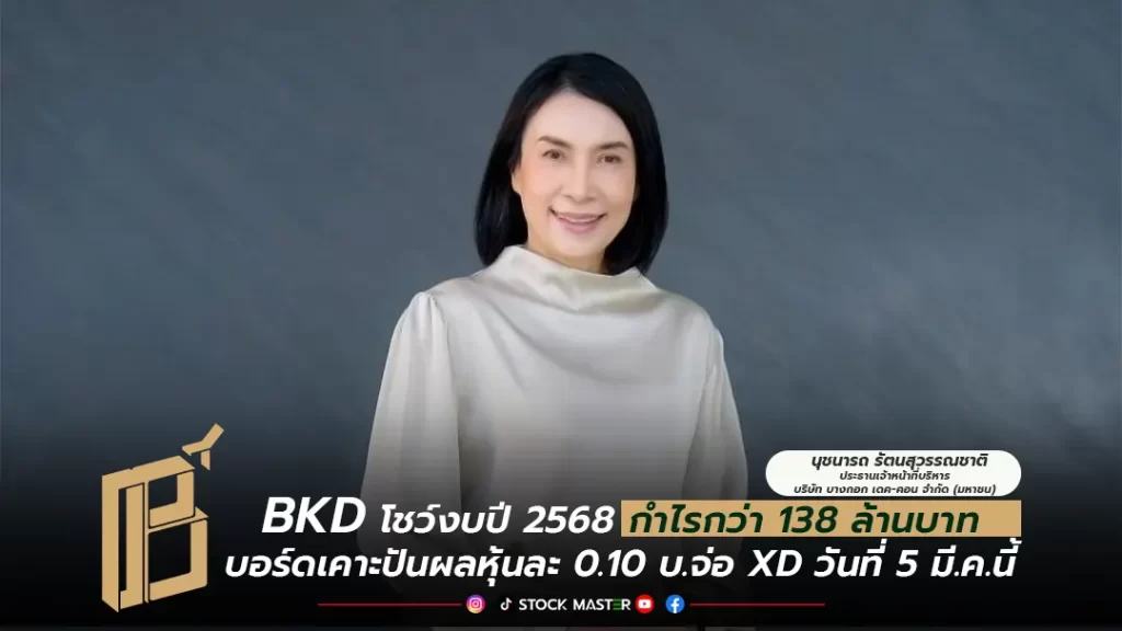 BKD ประกาศกำไรปี 68 แตะ 138 ล้านบาท พร้อมจ่ายปันผล 0.10 บาท จ่อ XD วันที่ 5 มี.ค.นี้ กางแผนปี 69 รุกเทคโนโลยี Dashboard ยกระดับงานตกแต่งภายในครบวงจร