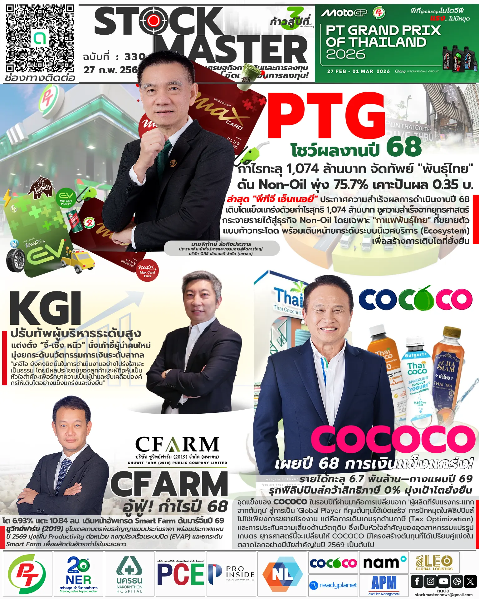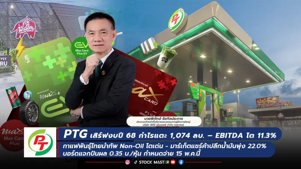 PTG โชว์ผลงานปี 68 กำไรทะลุ 1,074 ล้านบาท จัดทัพย์ “พันธุ์ไทย” ดัน Non-Oil พุ่ง 75.7% พร้อมเคาะปันผล 0.35 บ.