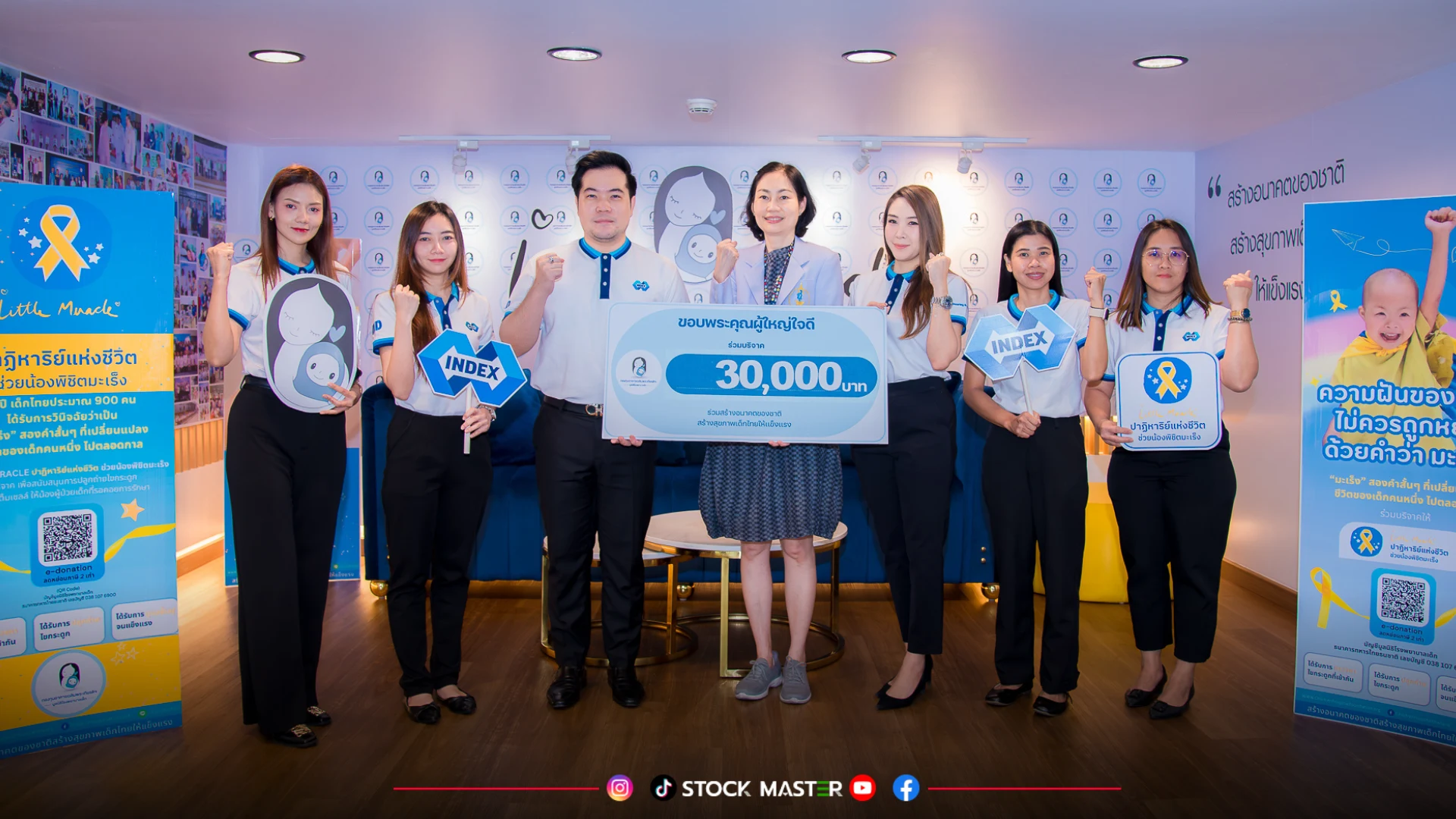 พร้อมด้วยคุณวรางคณา ณ ลำพูน (ที่ 3 จากขวา) ผู้ช่วยประธานเจ้าหน้าที่บริหารสายงานบริหารและพัฒนาองค์กรเพื่อความยั่งยืน และพนักงานบริษัทฯ เป็นตัวแทนมอบเงินสนับสนุนสมทบทุน จำนวน 30,000 บาท ให้กับมูลนิธิโรงพยาบาลเด็ก ผ่านโครงการ Little Miracle ปาฏิหาริย์แห่งชีวิต ช่วยน้องพิชิตมะเร็ง เพื่อระดมทุนสร้างหอผู้ป่วยปลูกถ่ายไขกระดูกและสเต็มเซลล์ (BMT Unit) รวมถึงจัดซื้ออุปกรณ์ทางการแพทย์ ช่วยเพิ่มโอกาสรอดชีวิตให้เด็กป่วยมะเร็งเข้าถึงการรักษาที่รวดเร็ว ซึ่งกิจกรรมดังกล่าวจัดขึ้น ณ มูลนิธิโรงพยาบาลเด็ก กองทุนเฉลิมพระเกียรติตึกสยามบรมราชกุมารี เมื่อเร็วๆ นี้
