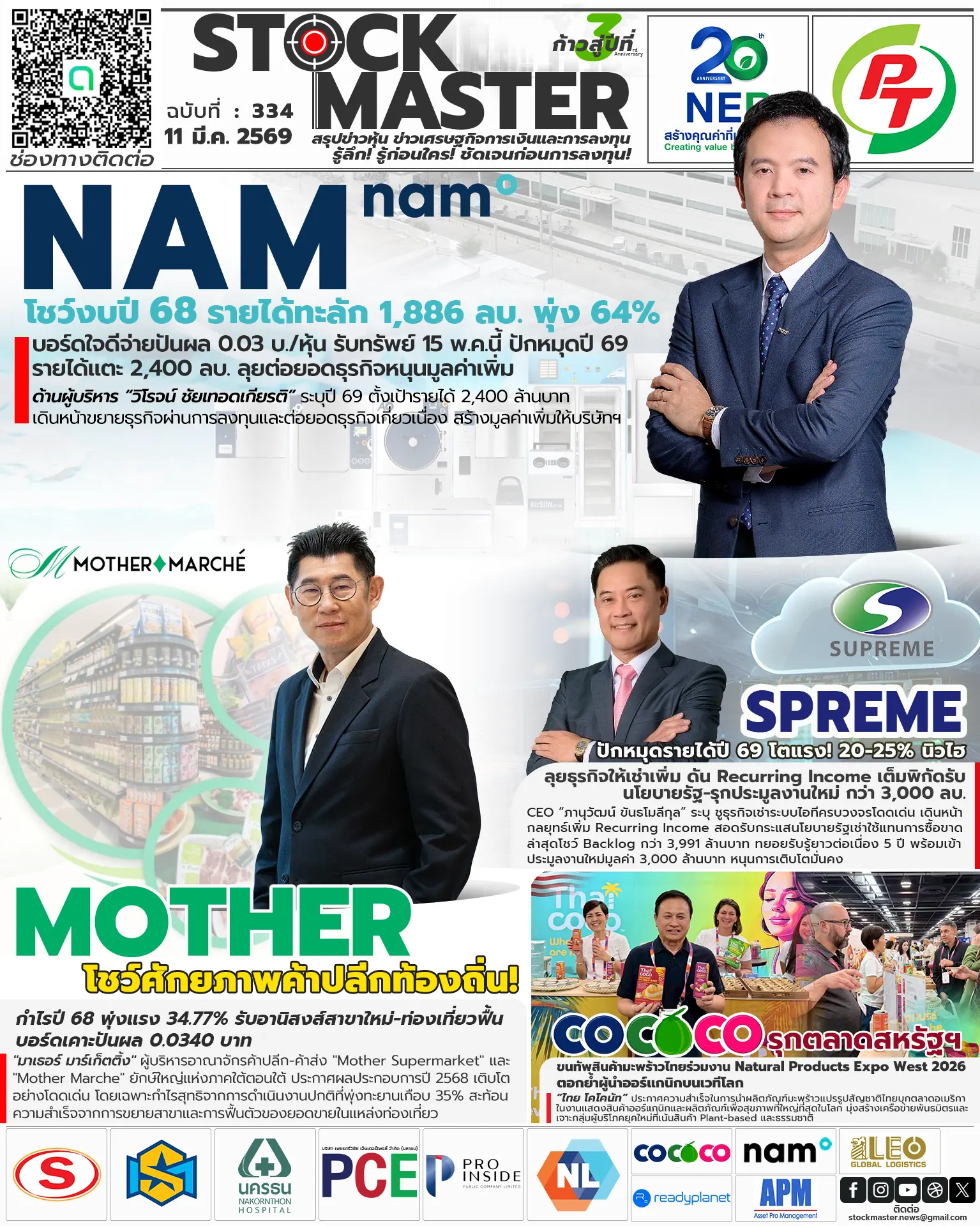 NAM โชว์งบปี 68 รายได้ทะลัก 1,886 ลบ. พุ่ง 64% บอร์ดใจดีจ่ายปันผล 0.03 บ./หุ้น รับทรัพย์ 15 พ.ค.นี้ ปักหมุดปี 69 รายได้แตะ 2,400 ลบ. ลุยต่อยอดธุรกิจหนุนมูลค่าเพิ่ม