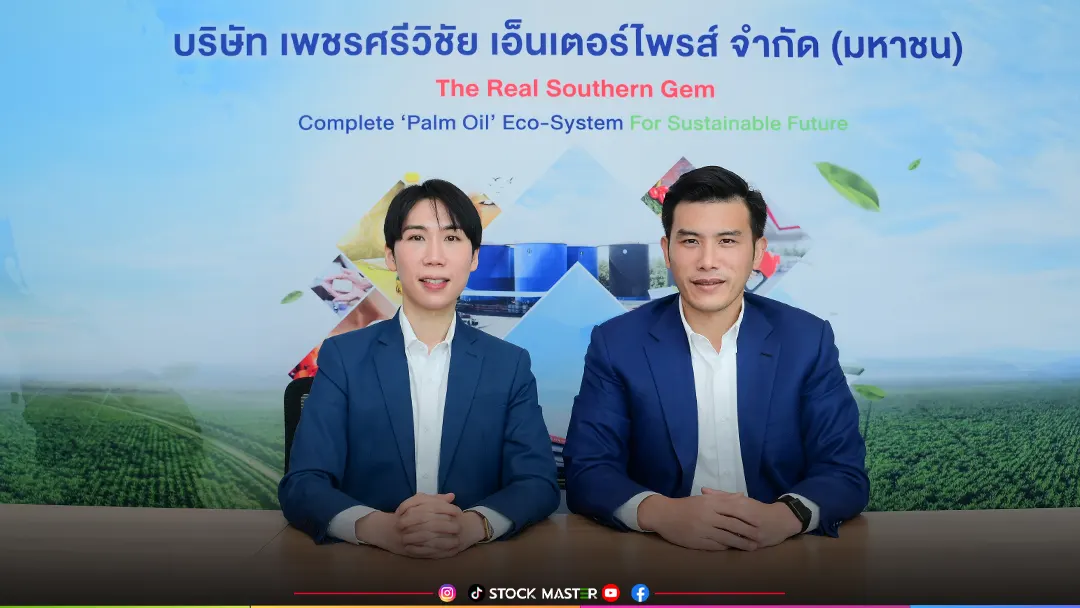 นายพรพิพัฒน์ ประสิทธิ์ศุภผล (ขวา) รองกรรมการผู้จัดการสายงานกลยุทธ์และพัฒนาองค์กร พร้อมด้วยนายกีรติ ไชยะกุล (ซ้าย) ผู้อำนวยการอาวุโสสายงานบัญชีและการเงิน บริษัท เพชรศรีวิชัย เอ็นเตอร์ไพรส์ จำกัด (มหาชน) (PCE) ผู้นำอุตสาหกรรมน้ำมันปาล์มแบบครบวงจร ร่วมนำเสนอผลการดำเนินงานประจำปี 2568 และแผนการดำเนินธุรกิจปี 2569 ในงานบริษัทจดทะเบียนพบผู้ลงทุน “Opportunity Day” ผ่านระบบ Video Conference