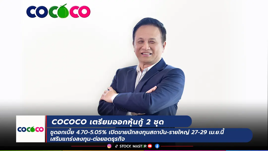 COCOCO เตรียมออกหุ้นกู้ 2 ชุด ชูดอกเบี้ย 4.70-5.05% เปิดขายนักลงทุนสถาบัน-รายใหญ่ 27-29 เม.ย.นี้ เสริมแกร่งลงทุน-ต่อยอดธุรกิจ
