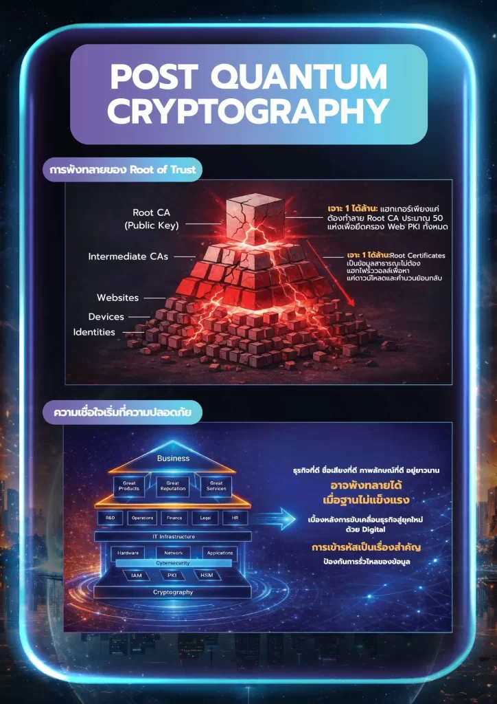 เผยความเสี่ยงเชิงระบบต่อความมั่นคงของเศรษฐกิจและสังคม ดึงกูรู ผู้เชี่ยวชาญระดับประเทศ ถ่ายทอดมุมมอง ถอดรหัสโอกาส สร้างเกราะป้องกัน ปรับตัวพร้อมสู่ยุค Post-Quantum Cybersecurity