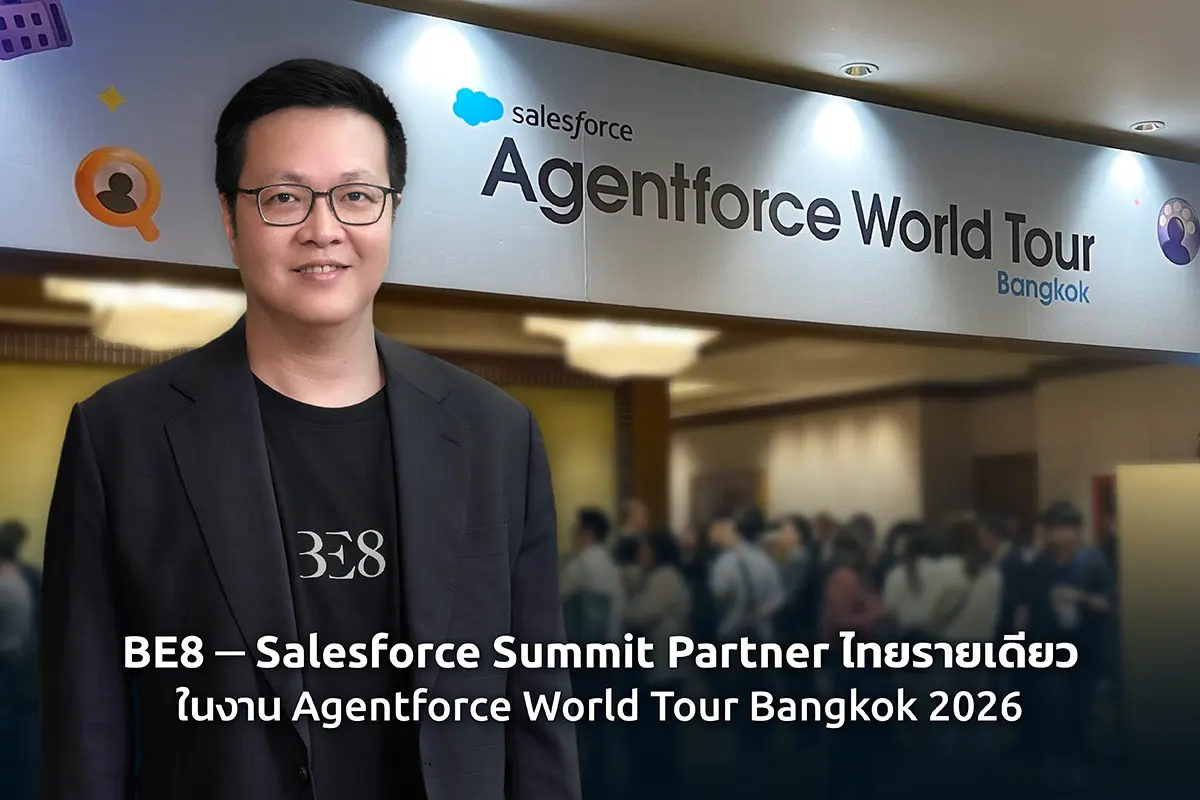 บริษัท เบริล 8 พลัส จำกัด (มหาชน) หรือ BE8 ผู้เชี่ยวชาญด้าน AI–Powered Digital Transformation เข้าร่วมงาน Agentforce World Tour Bangkok 2026 งานแสดงเทคโนโลยีและธุรกิจระดับโลกของ Salesforce โดย BE8 เป็นตัวแทนจากไทยเพียงรายเดียวในระดับ Summit Partner ที่เข้าร่วมงานครั้งนี้ สะท้อนบทบาท ของ BE8 ในการขับเคลื่อน AI–Powered Digital Transformation ในประเทศไทยและภูมิภาค