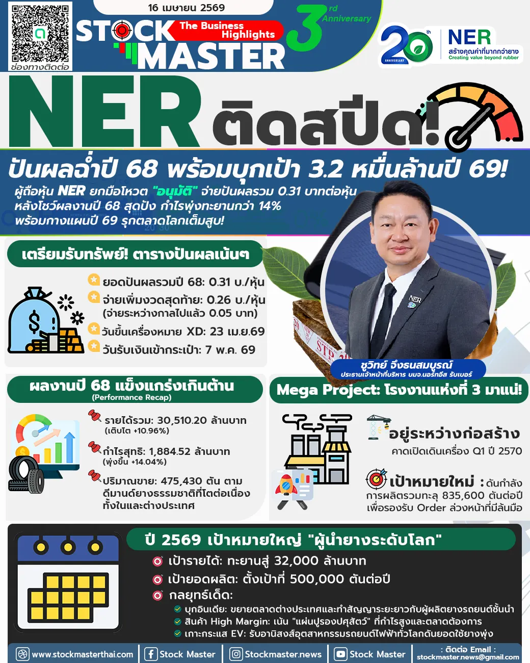 ผู้ถือหุ้น NER เฮ! มติที่ประชุมอนุมัติจ่ายเงินปันผลงวดปี 68 รวม 0.31 บาทต่อหุ้น เตรียมรับเงินเข้ากระเป๋า 7 พฤษภาคมนี้