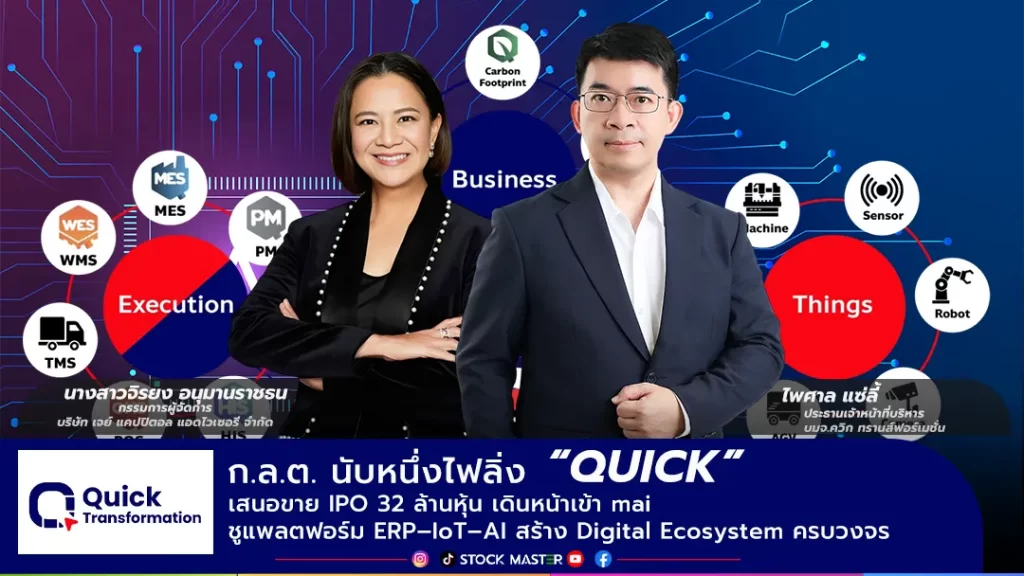 ก.ล.ต. นับหนึ่งไฟลิ่ง “QUICK” เตรียมเสนอขาย IPO 32 ล้านหุ้น ปักธงเข้า mai ชูจุดแข็งผู้นำ Digital Transformation ครบวงจร ผนึกพลัง ERP-IoT-AI