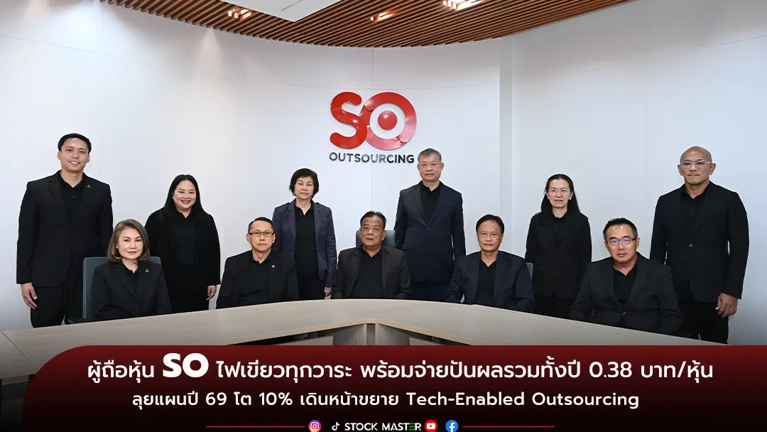 บมจ.สยามราชธานี หรือ SO จัดประชุมผู้ถือหุ้นปี 2569 ผ่าน E-AGM อนุมัติทุกวาระ พร้อมเคาะจ่ายปันผลรวม 0.38 บาทต่อหุ้น คิดเป็น Dividend Yield ราว 9% สะท้อนฐานะการเงินแข็งแกร่ง