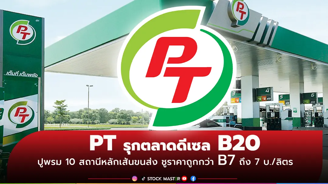 บริษัท พีทีจี เอ็นเนอยี จำกัด (มหาชน) หรือ PTG ประกาศปั๊มพีที (PT) เริ่มจำหน่ายน้ำมันดีเซล B20 เฟสแรก เพื่อช่วยลดต้นทุนให้กับผู้ประกอบการขนส่งและประชาชน โดยเน้นสถานีบริการน้ำมันบนเส้นทางหลักที่ครอบคลุมเส้นทางโลจิสติกส์สำคัญ 10 แห่งดังนี้ :