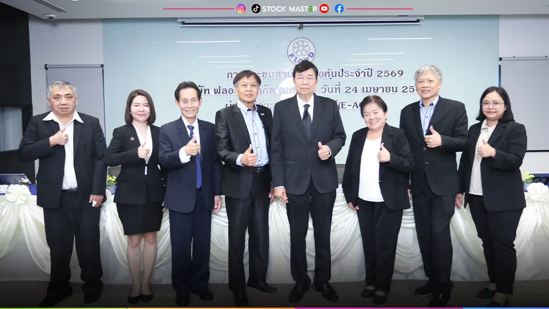 ม.ล.อยุทธ์ ไชยันต์ (ที่ 4 จากขวา) ประธานคณะกรรมการบริษัท นายทศพร จิตตวีระ (ที่ 4 จากซ้าย) ประธานคณะกรรมการบริหาร บริษัท ฟลอยด์ จำกัด (มหาชน) หรือ FLOYD พร้อมด้วยคณะกรรมการบริษัท จัดงานประชุมสามัญผู้ถือหุ้นประจำปี 2569 ในรูปแบบการประชุมผ่านสื่ออิเล็กทรอนิกส์ (E-AGM) เพื่อรายงานผลการดำเนินงาน และอนุมัติวาระสำคัญตามที่กฎหมายกำหนด