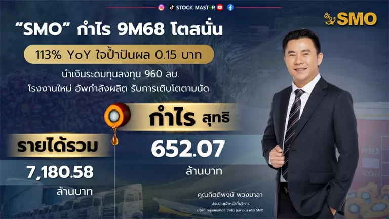 “SMO” กำไร 9M68 โตสนั่น 113% YOY ใจป้ำปันผล 0.15 บาทนำเงินระดมทุนลงทุน 960 ลบ. โรงงานใหม่ อัพกำลังผลิต รับการเติบโตตามนัด