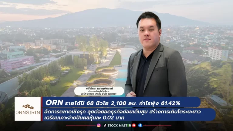 ORN รายได้ปี 68 นิวไฮ 2,108 ลบ. กำไรพุ่ง 61.42% โชว์ยอดพรีเซลสูงสุด 4,635 ลบ.