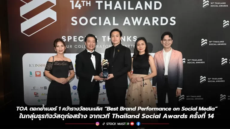 TOA ตอกย้ำเบอร์ 1 คว้ารางวัลชนะเลิศ “Best Brand Performance on Social Media”ในกลุ่มธุรกิจวัสดุก่อสร้าง จากเวที Thailand Social Awards ครั้งที่ 14
