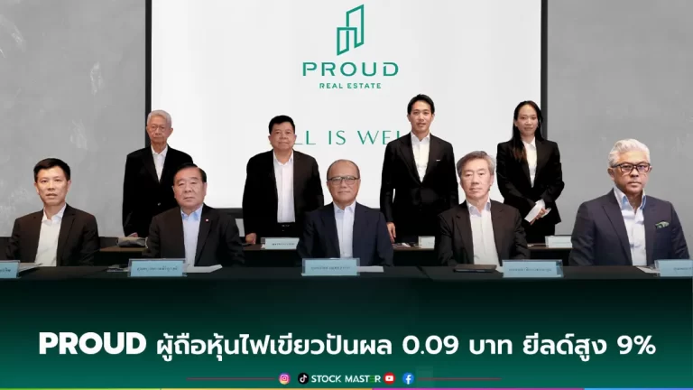 PROUD จัดประชุม AGM ผู้ถือหุ้นอนุมัติ จ่ายปันผล 0.09 บาทต่อหุ้น คิดเป็น Yield สูงถึง 9% Record Date 30 เม.ย. 69 กำหนดจ่ายปันผล 18 พ.ค. 69 พร้อมรับรองรายงานและรับทราบผลการดำเนินงานประจำปี 2568
