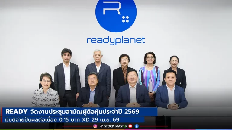 READY จัดงานประชุมสามัญผู้ถือหุ้นประจำปี 69 มีมติจ่ายปันผลต่อเนื่อง 0.15บ. XD 29 เม.ย.
