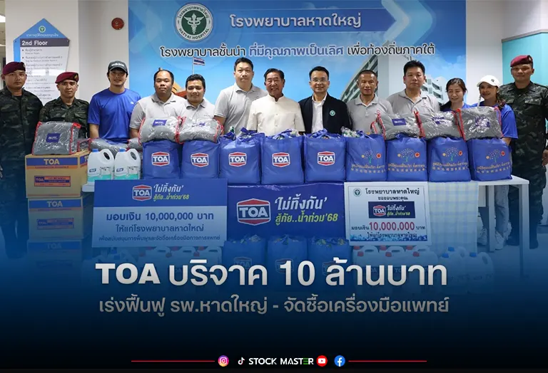 TOA บริจาคเงิน 10 ลบ. เร่งฟื้นฟู รพ.หาดใหญ่ ส่ง ‘ทีโอเอ อาสา’ ผนึกกำลังทหารปูพรมแจกถุงยังชีพ และทีมวิศวกรลงพื้นที่ประเมินความเสียหาย ช่วยพี่น้องชาวใต้เต็มพิกัด